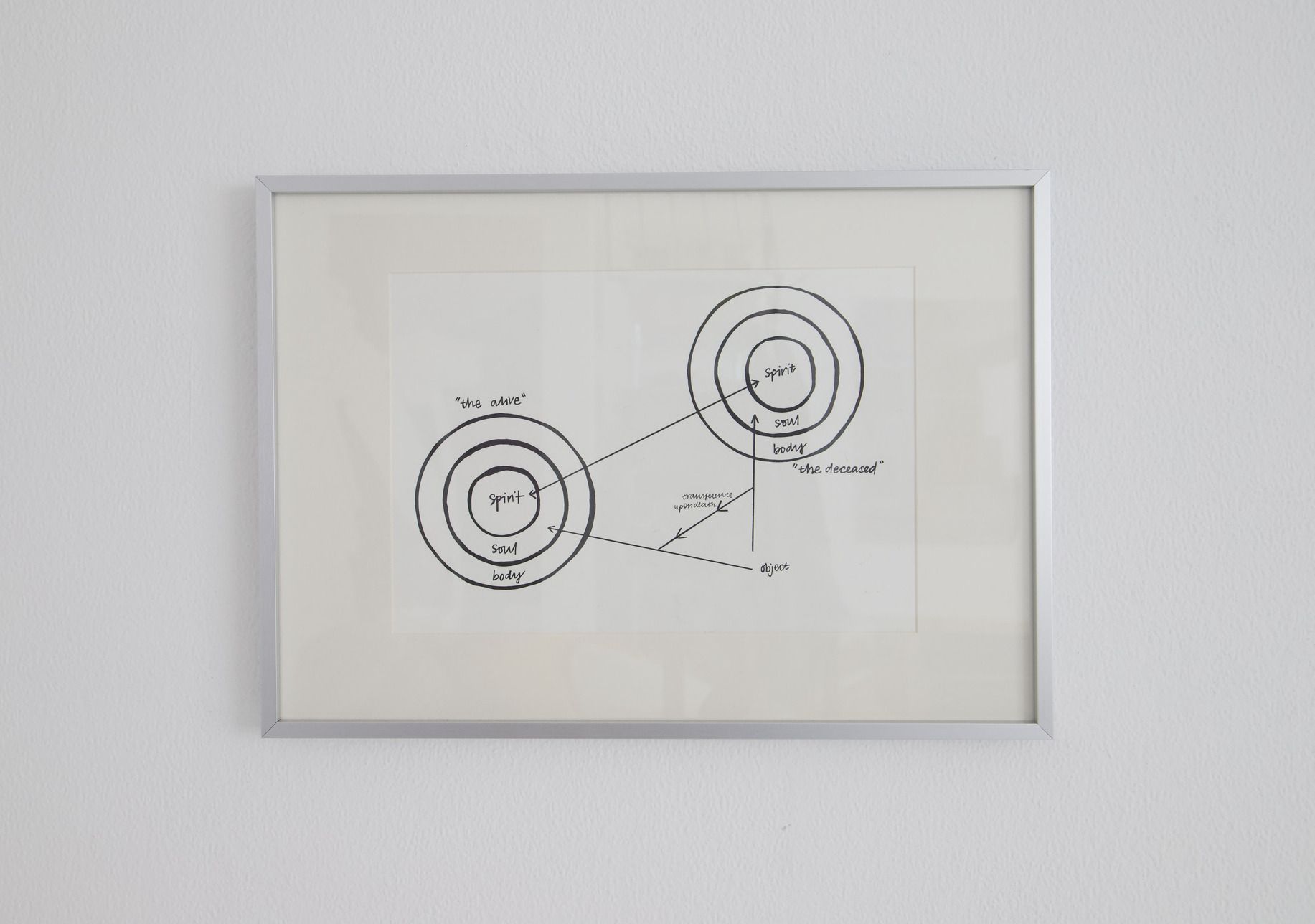 There is an enmeshment of the experience of loss with the collective societal sentimentality and sadness that comes from experiencing a death. Sound and light also exist within Kellard-Jones' sculptures, as a means of activating memory. Her relationship to objects, especially the inherited, follows an animistic belief, with the objects existing as beings, replacing the dead.