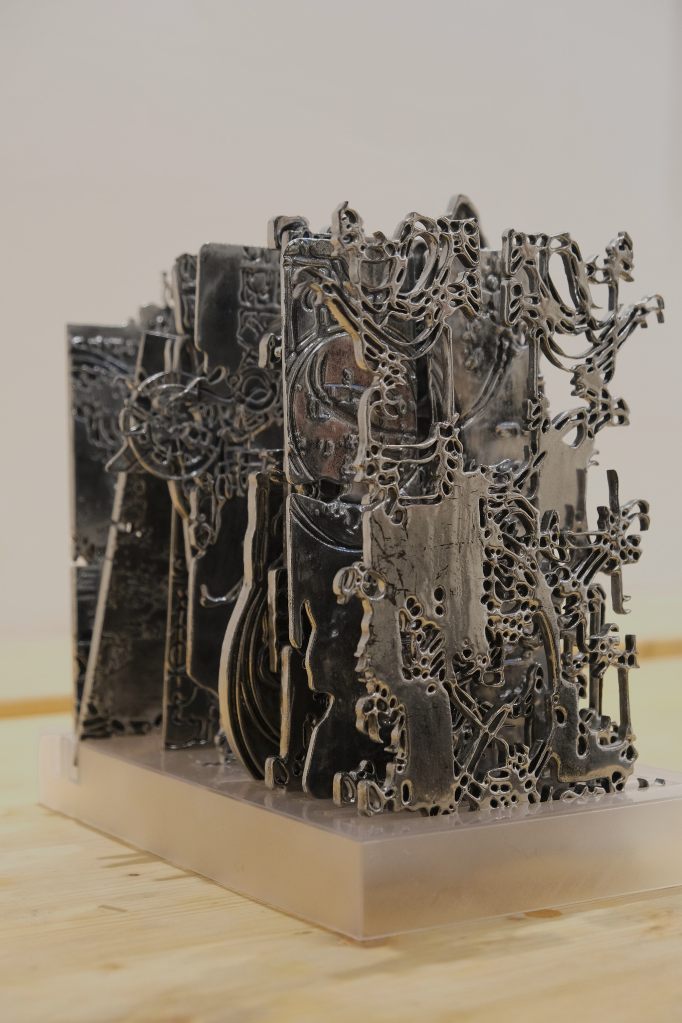 The Archive of Lost Wonders’ inaugural exhibition brings together an eclectic collection of works spanning diverse disciplines, including fashion, object d’art, carpentry, glasswork, painting, tattoo art, and photography. But what makes this exhibition truly unique is its narrative approach: each artist’s work is accompanied by a fictional, historically-inspired account penned by the curators, Stella Smith of Izena Gallery and Noor de Falco of Studio DEFA. These stories, compiled into a faux cultural anthropology book, fuse meticulous historical and cultural research with elements of mysticism, situating the artists’ real-life origins and practices within an alternate art history.